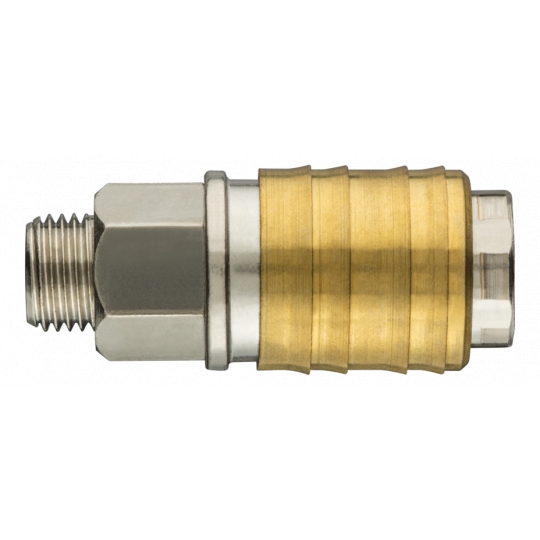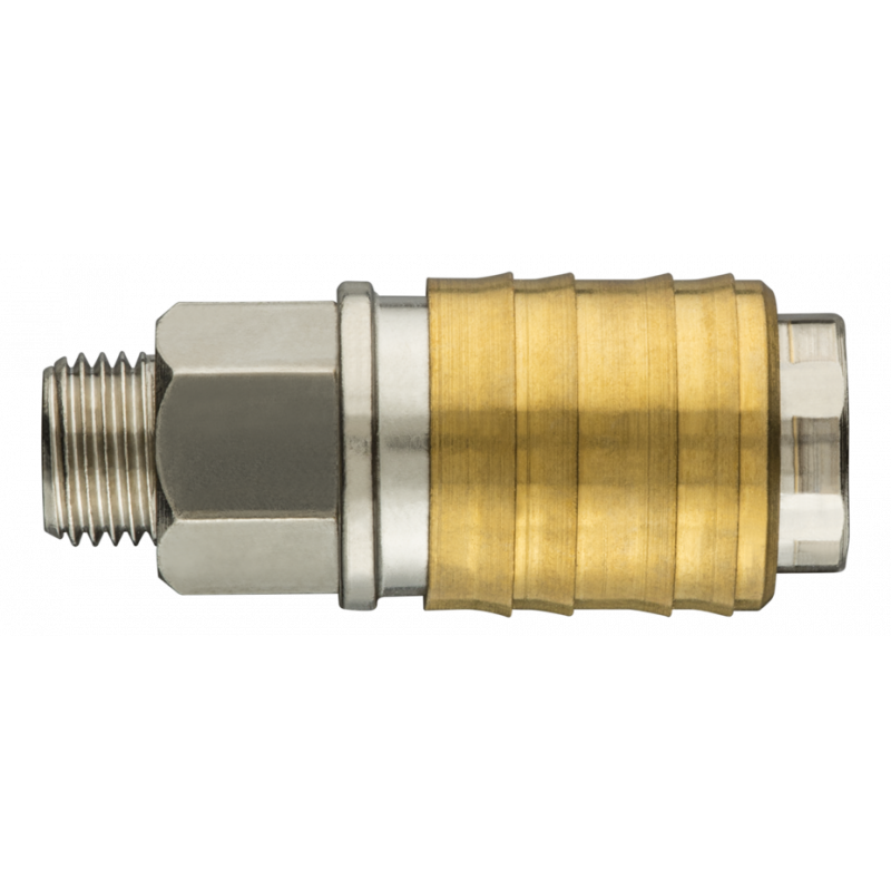 Szybkozłączka do kompresora, gwint zewnetrzny 1/4", stal nierdzewna, mosiądz, maksymalne ciśnienie 16 barów, CE