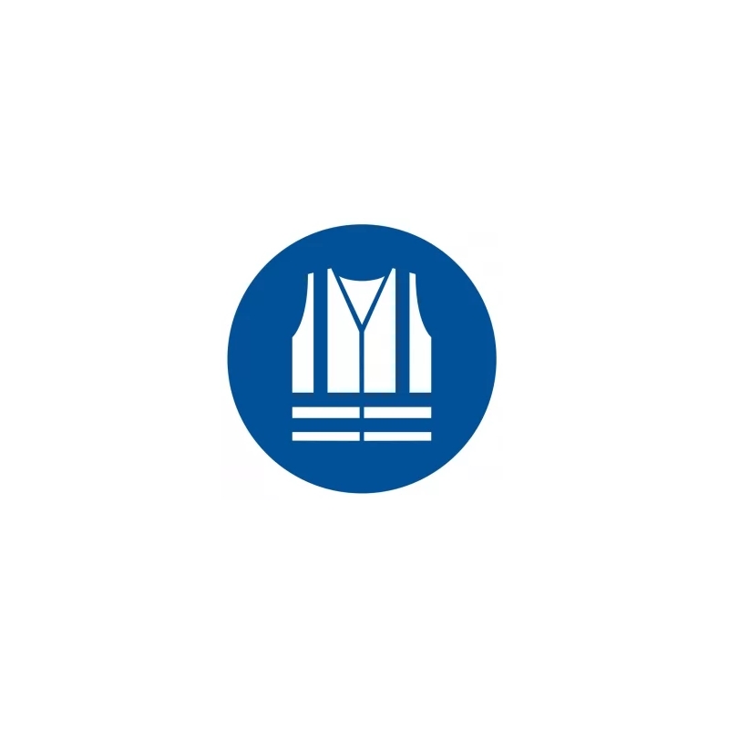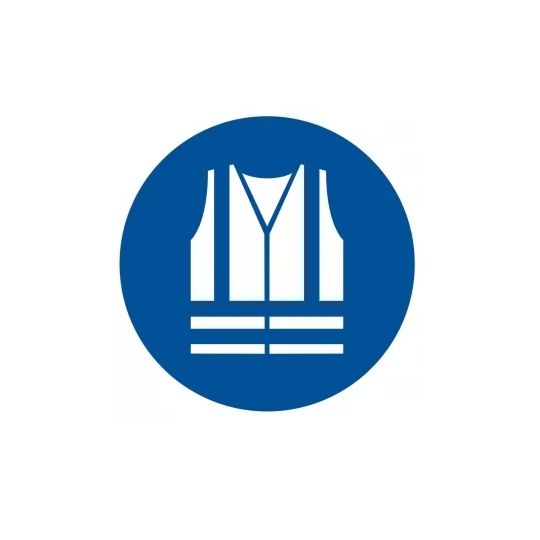 Znak informujący o obowiązku noszenia odblaskowej kamizelki.