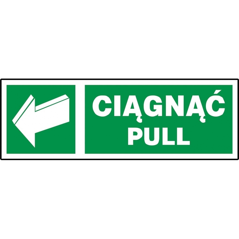 Znak ewakuacyjny „Ciągnąć Pull”.