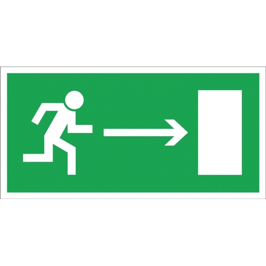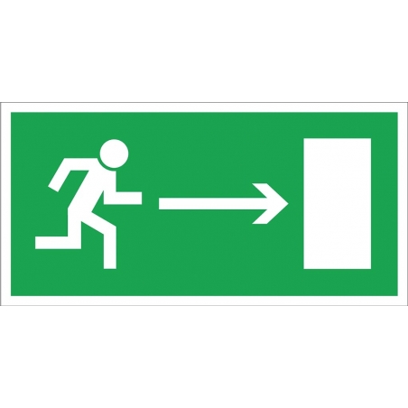 Znak ewakuacyjny „Kierunek do wyjścia drogi ewakuacji w prawo”.