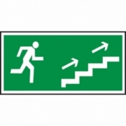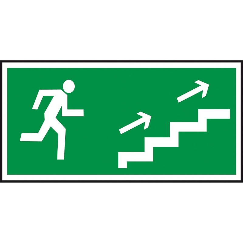 Znak ewakuacyjny „Kierunek do wyjścia drogi ewakuacyjnej schodami w górę”.
