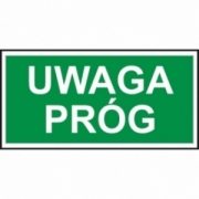 Znak ewakuacyjny „Uwaga próg”.