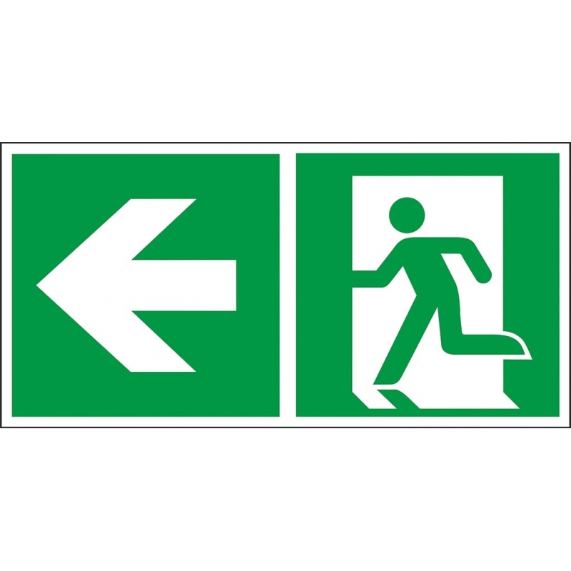 Znak ewakuacyjny „Kierunek do wyjścia w lewo i prosto (za drzwiami)”