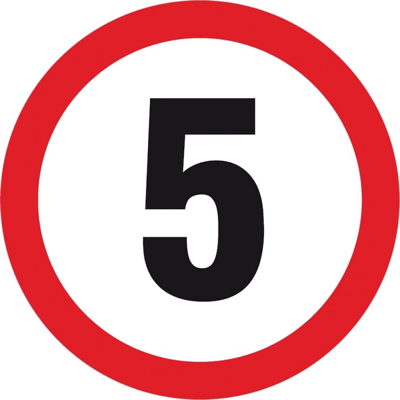 Znak na drogach wewnętrznych „Ograniczenie prędkości do 5 km/h”.