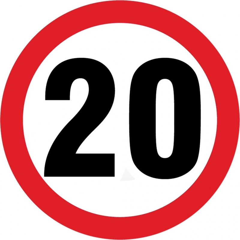 Znak na drogach wewnętrznych „Ograniczenie prędkości do 20 km/h”.