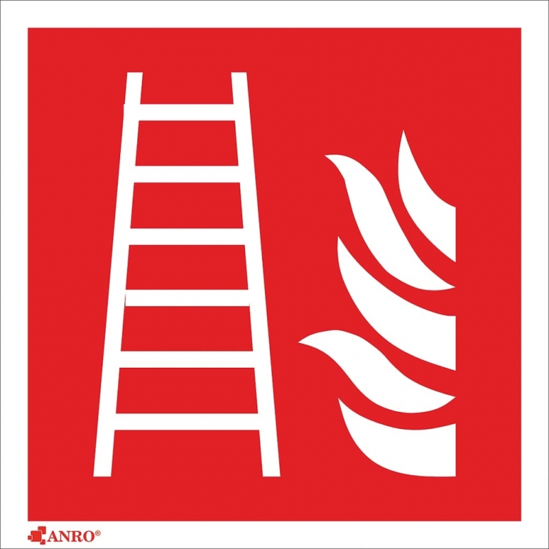 Znak ochrony PPOŻ. Drabina pożarowa. - format znaku F w rozmiarze 150x150 - wykonany nadrukiem fotoluminescencyjnym: FS - folia samoprzylepna, PT - płyta PCV, - zgodny z normą EN ISO 7010