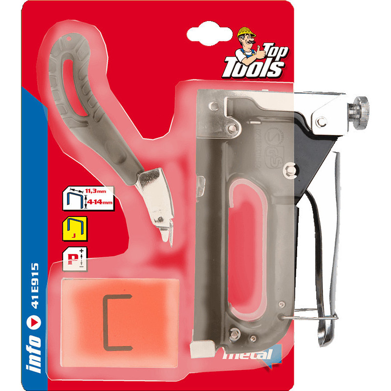 Zszywacz tapicerski 6-14 mm, zszywki J, wyciągacz do zszywek, metalowy korpus, regulacja siły wbijania, pierścień blokujący