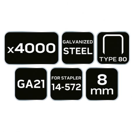 Zszywki galwanizowane do zszywacza pneumatycznego (do modelu NEO 14-572), GA21, Typ 80 (380), długość 8 mm, 4000 szt.