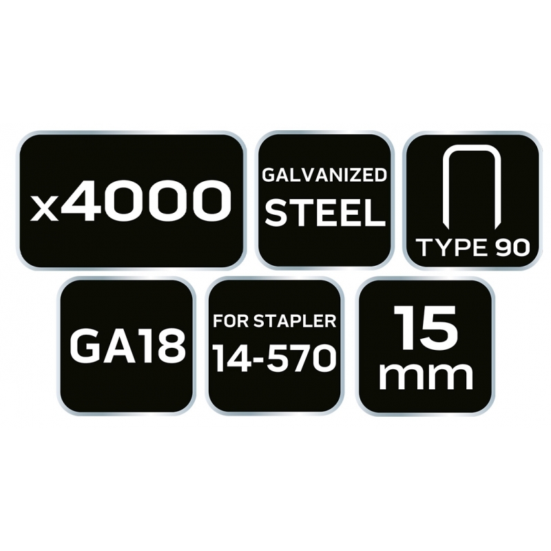 Zszywki galwanizowane do zszywacza pneumatycznego (do modelu NEO 14-570), GA18, Typ 90 (4K), długość 15 mm, 4000 szt.